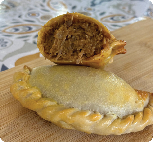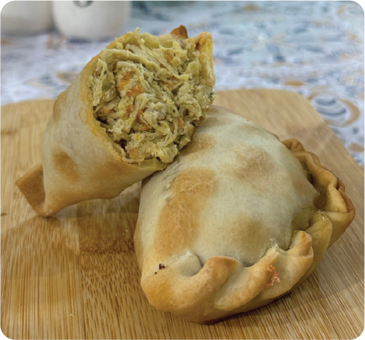 Shredded chicken, bell peppers, onions, garlic, and sweet peppers cooked in olive oil and baked in crispy dough.