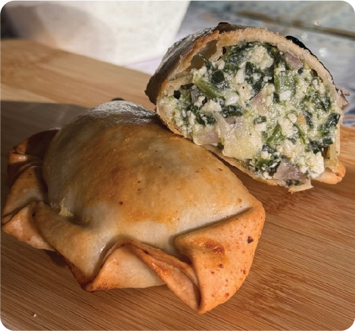 Fresh spinach sauteed with garlic and onions, along with creamy feta cheese and aromatic herbs in crispy dough.