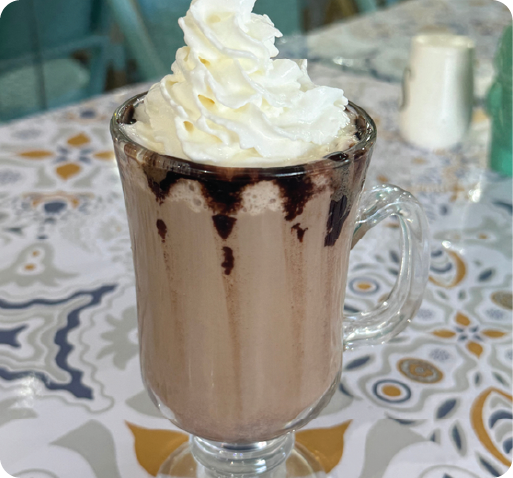 Made with high-quality chocolate and creamy milk, topped with whipped cream and cocoa powder.