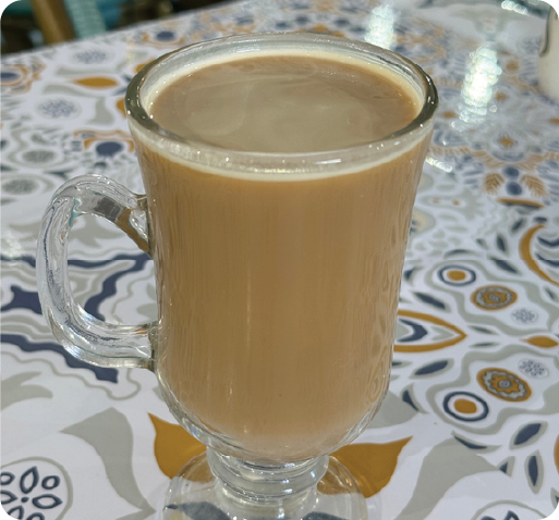 Cinnamon, cardamom, ginger, and cloves infused in black tea and combined with cold milk and sugar. Includes cinnamon.